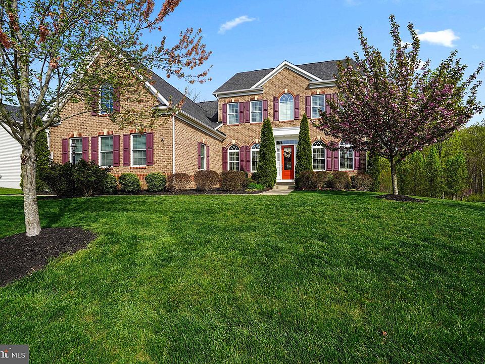 Welcome home to Dawson’s Corner. This beautiful NV Homes built single-family home is situated on a 0.33-acre lot backing to woods. The layout is open, and its condition is move-in ready with many details including window treatments and 9+ feet ceilings. Entering the foyer from the front door you will find the space welcoming and warm with lots of light throughout the main level. The lighting is upgraded, and the wood trim is exceptional. On each side of the foyer are the dining room and one of the two large offices. The dining room has a tray ceiling and beautiful wainscoting. The first office is bright and has upgraded crown molding and recessed lighting. The second of two offices is located on the rear of the main level at the entry of one of two staircases to the bedroom level. From the foyer, you enter the main level open hall space with a built-in bar with granite countertop and upgraded cabinets. This space is open to the living room with columns and crown molding. The living room is a great space for entertaining and is equipped with built-in wall cabinets/shelves, a fireplace, and oversized windows. The kitchen is gourmet with two islands, dual wall ovens, a gas cooktop, a dishwasher, a refrigerator, and upgraded materials. You’ll love the granite countertops and stainless appliances. Adjacent the kitchen is a breakfast area large enough for a dining room size table and chairs. The breakfast area opens to the composite deck with wrap-around stairs to the backyard. The bedroom level is expansive. Starting with the primary suit, you will appreciate the light from the windows and the tray ceiling with a chandelier. The primary suite has two walk-in closets, upgraded moldings, and a large primary bathroom. This primary bathroom is well thought-out. Twin upgraded vanities on both sides of a soaking tub and a walk-in shower complete the space. The materials are ceramic tile and the antiqued bronze adds a great touch to the overall space. The bedroom level has three additional bedrooms with their in-suit bathrooms. These additional bathrooms are tiled and granite countertops. The laundry is bedroom level and has cabinets and a mud sink with a granite countertop. You’ll find a full bedroom with large windows and a full bathroom with tile in the walk-out basement. This space has a family room and a large storage area. In the backyard, you’ll find a walking trail and lots of space for outdoor use. The front elevation is brick with lots of landscaping making for great curb appeal. There is plenty of space for parking on the driveway and the 3 garage is 21 feet deep, perfect for longer vehicles. The garage includes a Tesla charger. Join us for open houses this weekend from 1-4 pm. Properties of this caliber move quickly so don’t delay scheduling your showing.