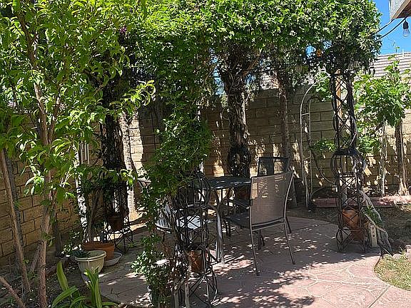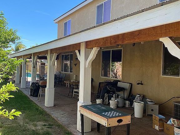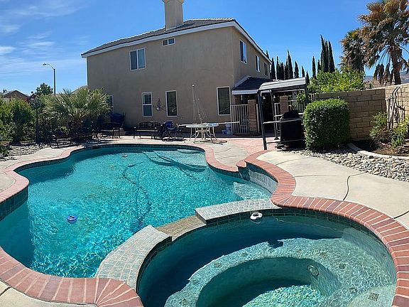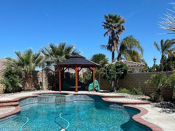 Completed backyard with a very large patio with tile roof. Fully managed pergola with flowering vines. The backyard a tropical delight with palm trees, swimming pool and Jacuzzi. The pool area is decorated and fully lighted for those romantic evening parties. The garden has over 33 fruit bearing tries – 2 figs, 5 different peach verities, Asian pear tree, 2 apple trees, 5 grape vines, 3 plum trees, 2 almond trees, an apricot tree, etc. These tress produce an abundance of fruits every year. The front rose garden is the best in the area with over 10 varieties producing yellow, purple, red, and other vibrant colors. The drive way is large and can accommodate any large RV.