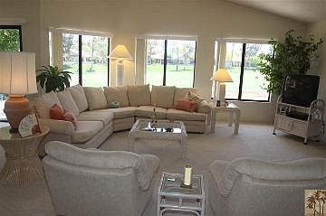 Back on the market after 90 days in escrow! Fantastic views of the entire 7th fairway, 3 lakes, a waterfall AND the Santa Rosa Mountains. This 3 bedroom, 2 bath condo is turnkey furnished and move in ready condition. At $249,000 this is the best value in The Oasis! Best of all it is in The Oasis CC, one of the best kept secrets in Palm Desert. With low HOA's, affordable golf and tennis, a clubhouse with causal and fine dining, beautifully maintained grounds and the friendliest members, this club is special! The Oasis CC is centrally located and close to fine dining, entertainment, shopping and recreation