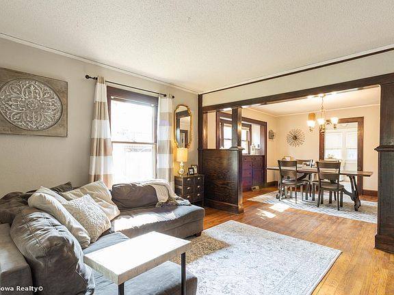 Welcome home to this charming, spacious Arts & Crafts home in Urbandale School District Character abounds You'll love the enclosed front porch that leads to spacious living & dining rooms with beautiful original woodwork, built in buffet & hardwood floors throughout main level. Cheery & bright updated kitchen with white cabinets & tile floor. Two good sized bedrooms on main floor. Updated bath with tiled tub surround, & tile floor. You'll love the fantastic 2nd floor master bedroom with huge walk-in closet (currently being used as child's room. Lots of room for having fun in the finished lower level family room with newer LVP flooring. You're going to LOVE the Theatre room with projector, screen & furniture included Large laundry area half bath, & ample storage. Great outdoor space featuring brick patio and flat, fenced yard makes the perfect place to gather with friends and family or simply relax. Call today