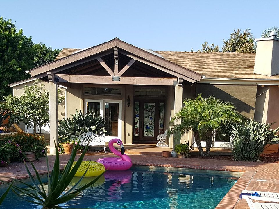 Shown by appointment only: Amazing, one of a kind, two bedroom house is located behind the main house and features great privacy, open beam wood timber ceilings, formal entry with skylight and stained glass entry doors, French doors in the dining room, kitchen and living room, wood floors, granite counters, vaulted ceilings, skylights, luxury finishes, stone fireplace, walk-in closet with washer and dryer in the elegant master bedroom / bathroom suite. Please note: The only bathroom is inside the master bedroom suite (you must go into the master bedroom to get to the bathroom). Built as a true luxury home with its own private fenced back yard featuring a shady macadamia tree and a flagstone patio. The second bedroom is a beautiful, detached bonus room (art studio - office - guest room) with its own private entry, wood floors, high ceilings, huge windows, skylights, air conditioning and heating. The pictures of the room with the skylights are of this detached art studio that can also be used as a spare bedroom or office. One off-street parking space in the driveway is included. The swimming pool is shared with the front house. Excellent location in Bay Park with good freeway access to interstates 5 and 8. Minutes to Mission Bay, beaches and trolley stops, busses etc, a block away from Siesel's Meats and Bay Park Coffee. Owner pays for water and pool service. Tenant pays for electricity and gas. Renter's insurance, pet insurance and pet rent are required. No large breed dogs.
