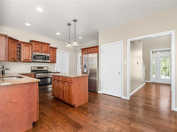 Beautiful custom-built brick and stone Colonial in Grandview Estates. Wide planked hardwood flooring highlights the entire first floor. Freshly painted throughout with new upgraded carpet on the 2nd floor. The kitchen boasts stainless steel appliances, luxury granite countertops, maple cabinetry, and a large center island. Enjoy meals in the light and bright morning room with cathedral ceilings off of the kitchen. The family room is highlighted by a stone gas brick hearth fireplace and offers plenty of natural light. The dining room is perfect for Holiday gatherings. The first floor living room is also perfect for a home office. Upstairs you will find a spacious owners suite with large walk-in closet and ensuite bath with jet tub, granite vanity and separate tiled shower. The remaining bedrooms are spacious and offer ample closet space. Finished lower level walk out gameroom with full bath and new luxury vinyl flooring. Trex deck overlooks the Great yard. Built in 2014,must see.
