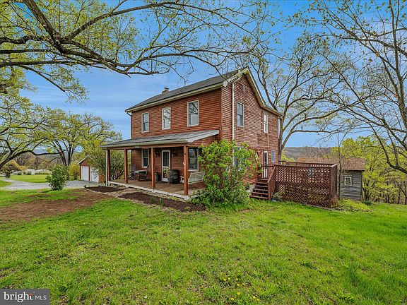 1920's farmhouse with spectacular views! Step away from it all at Fairview Farm, a vintage farmhouse situated at the top of a ridge with nearly 360 degree views of the mountains and countryside! Located just a few miles from Berkeley Springs, West Virginia, this charming farmhouse offers the right blend of modern amenities and historic charm. This well maintained home features 3 bedrooms and 2 full bathrooms across over 1,300 square feet of living space as well as additional room to grow in the basement. The home has a gas fireplace, central air, hardwood floors and comes completely furnished. Outside you will find a two car garage, a covered front porch to enjoy the beautiful westerly sunsets, large back deck, and a large backyard play set. Enjoy planting flowers in the oversized and partially fenced yard. With over 7 acres, the possibilities are endless! The home is just 5 minutes from the Potomac River, and just a few more minutes to the C&O canal & Western Maryland Rail Trail. Make this your full time, part time or vacation rental. Call your agent today to schedule an appointment!