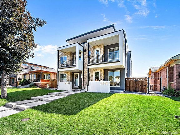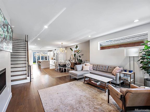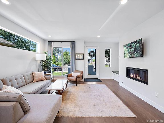 Exceptional modern townhome with mountain views in the heart of Berkeley! Featuring an open floor plan with clean lines and tons of sunlight throughout, this home offers 3 levels of serene living space...both indoors and out. The main level features a sleek living room with gas fireplace, dining room, and gourmet kitchen that opens up to a private patio. The second level provides 3 ensuite bedrooms including a private primary suite with balcony and 5-piece bath. The 3rd level is perfect for office space or additional entertainment area and features a wet bar and rooftop patio. The newly finished basement includes a family room with custom built-ins, guest bedroom, and 3/4 bath. The outdoor space provides a fully fenced yard and 2 car detached garage. Incredible location and close proximity to parks and Tennyson Street shopping and restaurants.