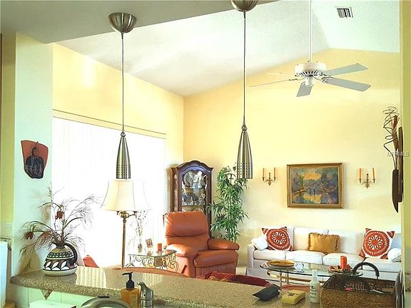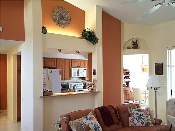 Super Split Floor Plan with Vaulted Ceiling in Living Room! Very well-maintained Spacious Ranch with a nice view of the Lake in Back! Relax on the Lanai/Three Seasons Room, with the Sliding Window/Screen Additions, and enjoy Nature on the Lake in the Backyard. The Lanai has cable TV as well. Kitchen is open to the Living Room and has a nice eating area with a Bay Window, along with Upgraded Counter-Tops. Large Dining Room for entertaining with a Decorative Vaulted Ceiling. Relax in the Open and Spacious Living Room with a Vaulted Ceiling as well. The Bedrooms are all on the Large Size, with the Second Bedroom being used as a very nice Office. Enjoy the many Closets and the spacious Laundry Room with Tub. Roof was replaced in 2009, along with Bathroom Windows replaced in 2017. Beautiful Brick-Paver Driveway was done in 2011. Exterior of home was freshly painted in 2017. Let the fresh air in through the Front Door with the newer Pull-Out Screen Door. There are three Sliding Doors leading to the Lanai. Nice Garage with Side-Entry Door, plenty of Cupboards, and a pull-down Ladder for Attic Storage. There is a Sprinkler System and very nice Landscaping as well! There is a One-Time Capital Contribution Fee of $1,000, along with Quarterly Peridia Dues of $648 and the $450 Annual Food & Beverage Fee. There are plenty of activities in this Community with Pool & Floor Aerobics, Tennis, Pickle Ball, Holiday Member Golf Tournaments, Dinner Dances, etc. This home will not last long!