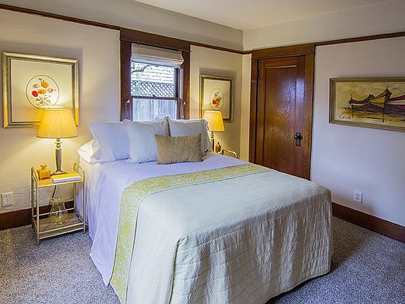 Quiet City Living with Country Charm! With 2 Bedrooms and 1 Bath on main level, this Bungalow Beauty has a Vintage Country Kitchen you will melt into. 1yr old Hot Water Heater and newer Ultra-efficient Gas Furnace. Generous Living and Dining Room to Entertain. Original glass-paned Pocket Doors, Picture Rail, and several Built-ins. Spacious Bedroom Loft with extra-large Walk-In Closet and Skylight. Broad neighborly porch to greet family and friends. New Carpet and Paint. Handy Sun Room Entry and Over-sized Garage with attached Garden Shed. Private brick-paved patio and Garden Sanctuary - Fully Fenced. Walk or Bike to Woodstock, Tennis Courts, Eastmoreland Golf Course, Crystal Springs Rhododendron Garden, Springwater Corridor and Westmoreland Park, Woodstock or Berkley Park.