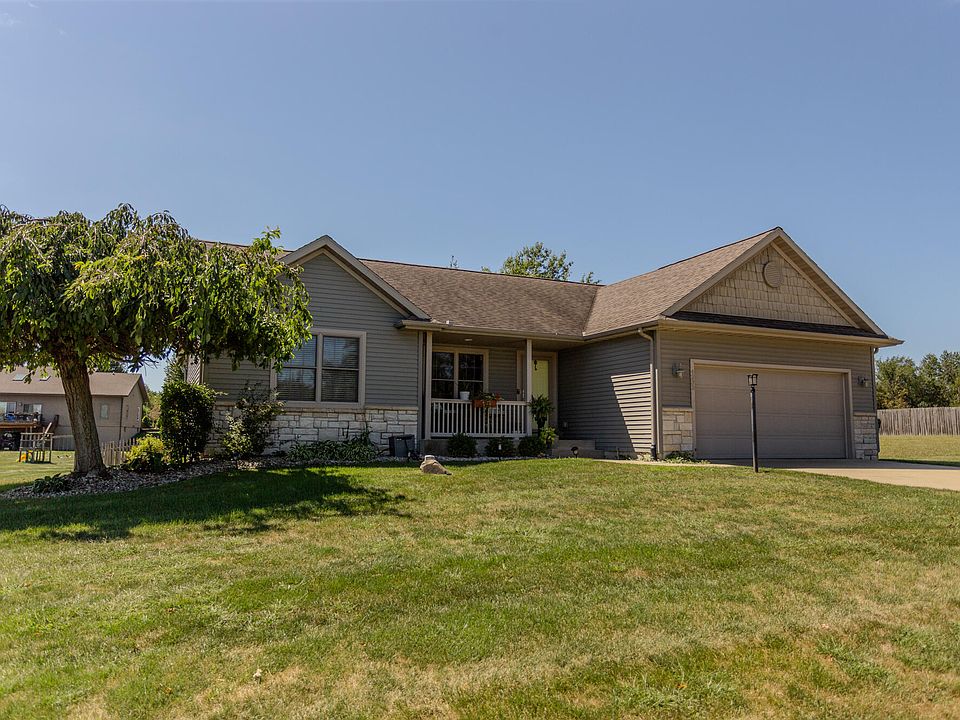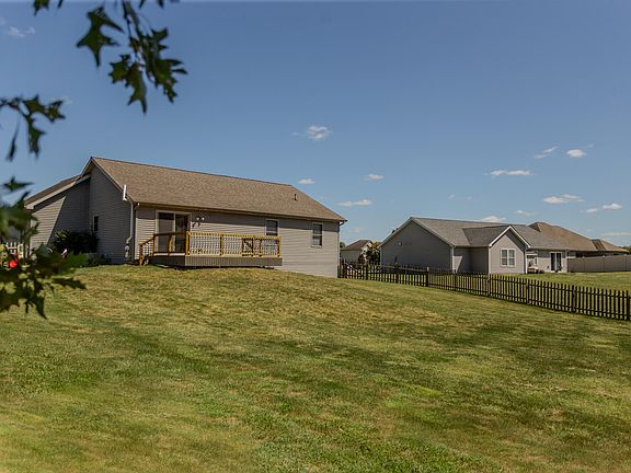 Well cared for 3 Bed, 2.5 bath home in Crestview Subdivision. This ranch built 2008 sits on a large 1/2 acre lot. Easy living with main floor laundry and primary bedroom with ensuite bathroom. Washer and dryer stay! Kitchen has all stainless appliances. Much of the basement has been tastefully finished creating a great additional living space with a 1/2 bath. Plenty of light and an egress window. Future forth bedroom possible! Loads of additional storage in the large utility room and 2 car garage. Poured concrete driveway up front. Enjoy your time off on the newly built deck overlooking the fully fenced back yard.