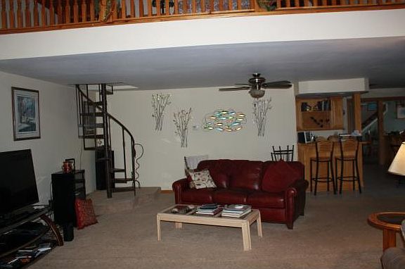 This Contemporary Home has plenty of OPEN SPACE! Beautiful Lake Views. Featuring an open floor plan, center island in the kitchen, full basement, fireplace, central sir, 5 bedrooms, 2 full baths, loft, deck, dock with electric hoist. This is a Year Round Home! Price just right! Take a tour today!