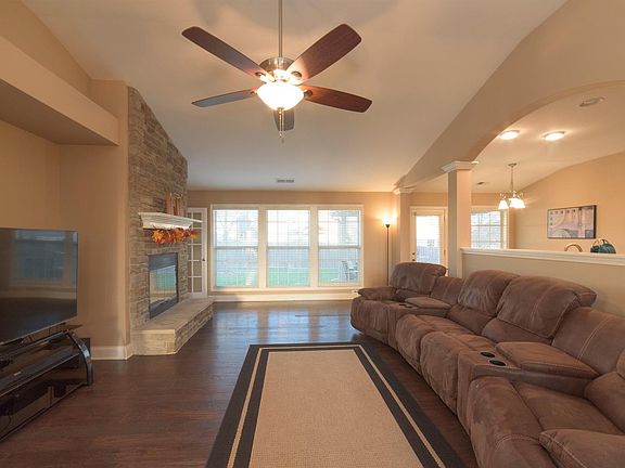 This home has it all! Immaculate ranch home on a gorgeous lot in desirable location. This 3BR, 2BA home is ready for new owners. Featuring an award winning floor plan, this home shows like a model. Beautiful curb appeal with stone and brick front exterior. Dramatic formal dining room with trim details and large arched windows with vaulted ceiling. Open and inviting family room with stone fireplace, ceiling fan, and vaulted ceilings. Engineered hardwood is throughout the entry, dining room, family room, kitchen, and hallways. Chef's kitchen with stainless steel appliances, solid surface countertops, and kitchen bar. Master suite features an incredible sun room/study that is rarely seen, vaulted with plenty of natural light. The backyard is a dream, fenced, flat, featuring a covered patio that is also vaulted with a ceiling fan. Several other items have been updated including LED lighting MyQ chamberlain garage door opener, and much more. Truly a beautiful home! See it today!