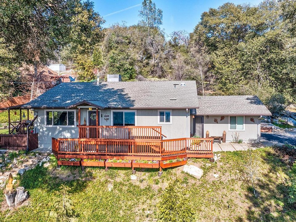 Move in Ready Oakhurst home! All one level in this 3 bdrm, 2 bath home with attached 2 car garage on a landscaped yard with a fenced area for kids or pets! Located on a spacious lot between Oakhurst and Bass Lake! Only 20 minutes to the south gate to Yosemite! Newly remodeled kitchen with newer cabinet galore with roll out shelves, a country sink and thick granite counters with rough mt edge. A great open floor plan with Vista Views. The living room has rock corner and stone base for the pellet stove. A slider take you to the covered patio and fenced yard. A front deck for the beautiful Sunsets! The 2 car garage is finished with work bench, shelves, sink, laundry and epoxy flooring. Come see this jewel! $499,000.