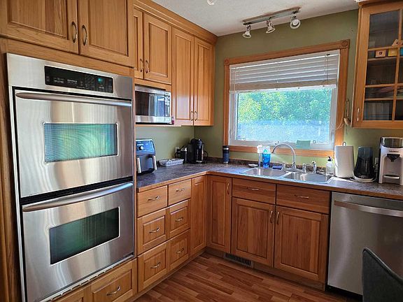 This beautifully updated bungalow in a desirable and quiet East End location, is close to walking trails, schools and hospital. shingles, blown-in insulation 7 yrs ago, with a stunning kitchen with an abundance of solid hickory cabinets, a breakfast bar, and stainless steel built-in appliances—including a double oven! The main bathroom has a jacuzzi tub, and tons of room, basement washroom has stand up shower, 2 bedrooms and there's potential for an additional bedroom in the finished basement. Outside, enjoy the fully fenced and meticulously maintained yard with flowerbeds, a garden area, and a large 13x26 deck complete with a built-in 12x9 covered gazebo with curtains and a cozy gas firepit—perfect for relaxing or entertaining. A spacious 25x25 detached, Heated, insulated man-cave/garage offers loads of potential. with upper storage to put your seasonal items Back alley access and quick possession available make this gem even more appealing. Truly move-in ready and an absolute must-see—don't miss your chance to call this beautiful property home!