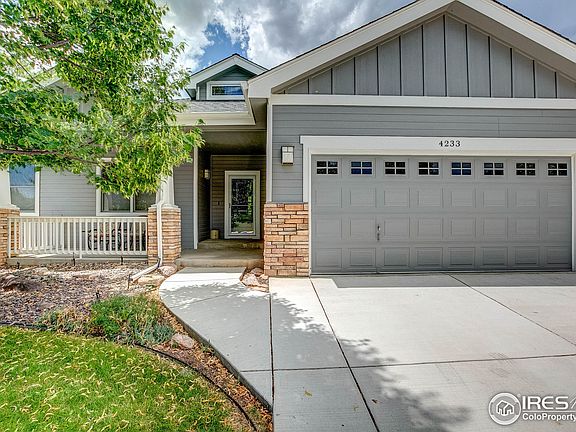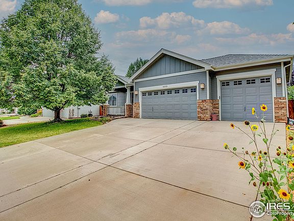 Modern Craftsman home built in 2002 in quiet Woodridge! Quality abounds with this gorgeous ranch style home. Features include all main floor living, new wood flooring throughout the main floor and stairway, new radiant floor heat and tiled flooring throughout the primary suite, new roof (2019) and an open floor plan with two bedrooms plus a study. Custom woodwork and Craftsman lighting punctuates the home. Additionally, the main floor features a full guest bathroom, a large living room with built-in sound system, a fireplace with a custom mantle, a large kitchen complete with abundant custom cabinetry, a new dishwasher and a new refrigerator, a walk-in pantry, a laundry/mud room off of the three-bay garage, and a light-filled dining room. A sliding glass door separates the dining room from the outdoor living area which makes dining al fresco a breeze! In 2017, the Sellers finished the basement and made great finish choices. The space includes 9 ft. ceilings, a gorgeous modern fireplace, a large bedroom with huge walk-in closet, and a soundproofed music studio. The basement also features a 3/4 bath and a bar area for entertaining. This home is located on the SW part of Fort Collins, within close proximity to Cathy Fromme Prairie and Horsetooth Reservoir.