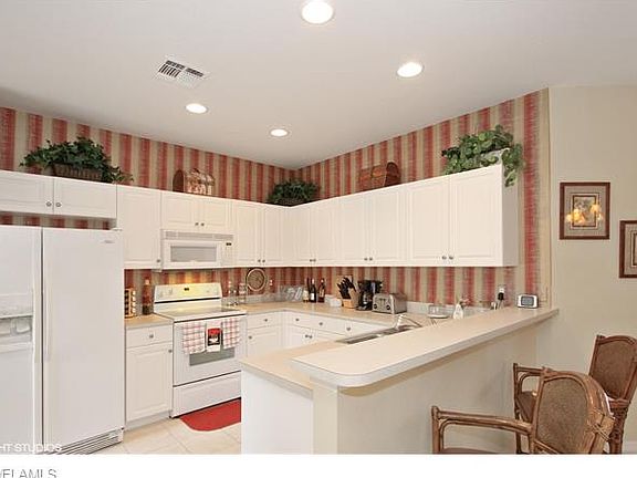 Enjoy the Southwest Florida Lifestyle with this move in ready home. A Single Level Living Villa in the much sought after Province Park Gated Community. One of the nicest homes in the community, this professionally decorated two bedroom split floor plan plus den home is exactly what you have been looking for. Open great room concept with vaulted ceilings. Fantastic location with a lake view from the extended lanai in the back. Large ceramic tile in main living areas and lanai, carpet in bedrooms and den. The master bedroom has walk-in shower, soaking tub, walk-in closet, and dual sinks with solid surface vanity tops. All doors have lever sets, light switches are rocker type. Painted garage floor with pull down stairs to give easy attic access. Homeowners have private access to Eastwood Golf Course and are entitled to special cart rates. Enjoy the community amenities...swimming pool, tennis, clubhouse, exercise room, biking and walking paths, sidewalks. Low HOA fees of $186 per month and no CDD. Home warranty provided. Minutes to Shopping, Schools, I-75 and RSW Airport. The PERFECT winter residence or full time home!