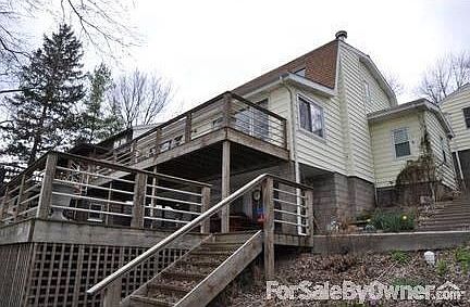 Very fun lakefront home for sale. Home orginally built in 1923, but was completely remodeled and expanded in 1978.  Home is two stories with walkout basement.  3 bedrooms/3baths. Two bedrooms upstaris and one bedroom on main level.  Downstairs bath includes a sauna shower. Home has two levels of large decks overlooking beautiful lake views and your own 2 slipped dock.  There is 50' of lake front with a steel shore wall. 2 powered hoists one for a boat and the other for two jet skis. Also includes a 38' x 12' lakeside deck. Home features a 3 car parking lot plus a car and half garage. Home also features a gas fireplace with built-in bookcases. Custom built cabinets in kitchen and a built-in entertainment center in finished basement. If you are wanting to enjoy your summers on the lake this is the place for you!  Additional property info: http://www.forsalebyowner.com/listing/9YI05?provider_id=28079