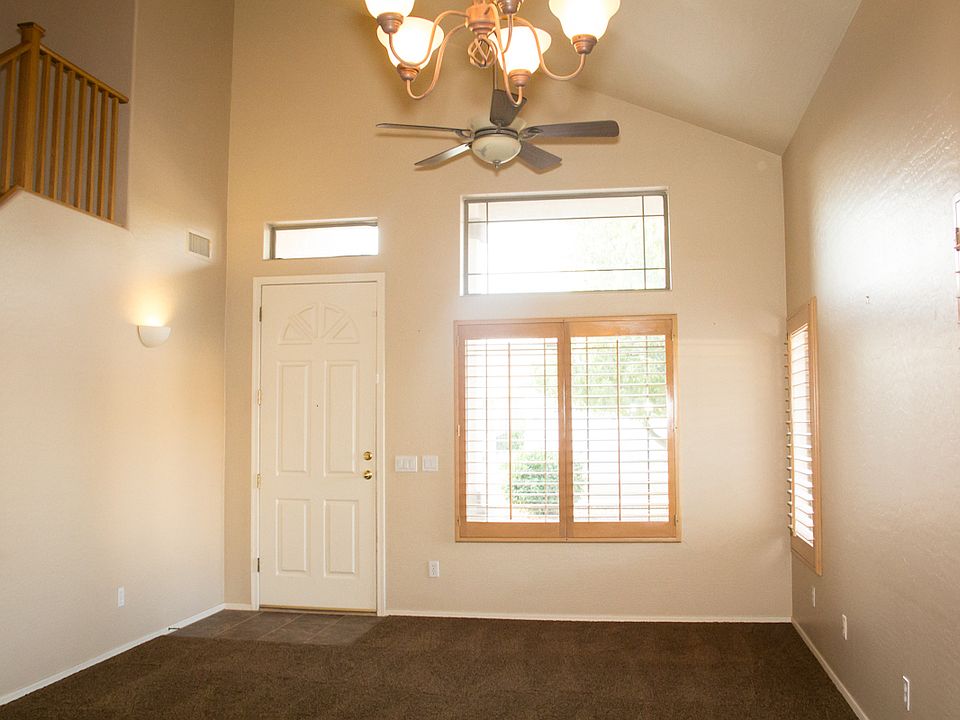 Public Remarks: Move-in ready home with upgraded fixtures,beautiful shutters,vaulted ceilings, neutral tile, carpet, and paint throughout. Open kitchen with lots of cabinet space with a large eat-in kitchen. Formal living, dining, and family room feel spacious in this wonderful 4 bedroom, 3 full bath home. One bedroom downstairs perfect for guests, an office, or just an extra bedroom with a full bath downstairs. Garage has a built-in workbench and has an extended storage space. Lots of storage space in the entire home. 3 bedrooms upstairs all boast walk-in closets. Master has a beautifully tiled shower and double sinks. Great cul-de-sac home on a corner lot with extended patio in the back and huge maintenance-free front yard. Great location convenient to shopping, airport, and freeways.