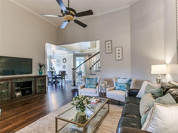 This updated, move-in ready beauty provides a gorgeous exterior with a stunning interior! Walking distance from Truman Primary and Truman elementary, this 4 bedroom, 2.5 bath house features a spacious living room, large kitchen, office, 2 dining areas, large bedrooms and plenty of storage! Recent updates include new wood flooring, tile, carpet, paint, lighting, hardware and much more. The updated master bathroom features quartz countertops, marble shower, custom lighting and jetted tub. The spacious backyard is perfect for entertaining with 200 square feet of covered outdoor living space including an outdoor kitchen and custom fire pit. Kitchen features granite countertops, custom cabinets and new appliances. 2nd floor has 3 bedrooms and jack-n-jill bath with private vanities. The large bedroom upstairs can also be used as a bonus room. The garage features a ton of built in storage with a dedicated storage room and workbench. HVAC units are new. Home has storm shelter in garage.