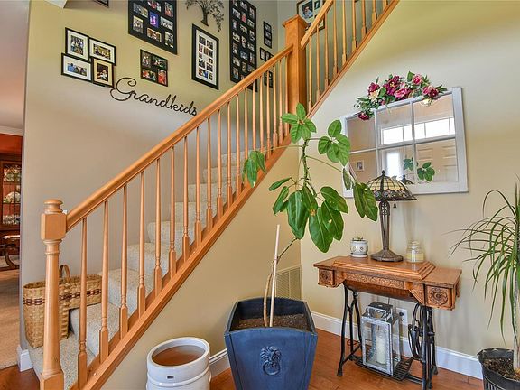 Fantastic, beautifully appointed 4 bed/2.5 bath, home with covered front porch & 3-car garage on 3.28 acres. Extremely well-maintained offering a formal dining room & office on either side of the open staircase entry foyer. The light filled great room has a slider opening to the composite deck. It flows into the kitchen via the gorgeous wood floors. Must-see, island kitchen with breakfast bar has granite counter tops, can lighting, some glass front cabinets, Stainless steel appliances including built-in microwave, wall oven, electric cook top with stylish vent hood, dishwasher & refrigerator. Crown molding & architectural touches throughout main floor. Huge, Main floor master features walk-in closet, double vanity, separate shower & large jetted tub. At the top of the stairs is a room big enough for a family room, game room or whatever! Also features economical Geothermal heating & cooling, water softener & full, W/O lower level. New roof put on prior to closing.