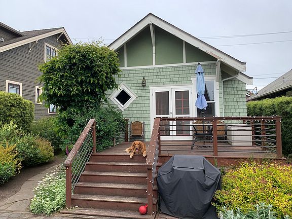 Enchanting 1911 Wallingford in-city retreat. Classic charm plus modern updates:wood floors, 9.5 Ft ceilings & original moldings, new windows, updated vintage-style bath, remodeled kitchen w/granite, SS, eating area & French doors to fabulous west-facing deck. Private, gorgeous yard, w/stone paths, fountain & patio for both relaxing and entertaining. Updated plumbing & electrical. Location is superb--close to restaurants & shops and easy access to I-5, 99, 520. Driveway with parking for two cars.