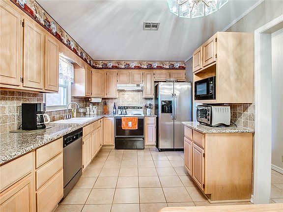 KITCHEN IS TOTALLY REMODELED. NEW CABINETS, GRANITE COUNTERTOPS, FLOORING. LARGE LIVING AREA WITH BIG COZY WOOD BURNING FIREPLACE. MASTER BEDROOM HAS PRIVATE 1/2 BATH. DINING ROOM HAS ROOM FOR LARGE TABLE AND LOTS OF STORAGE. NEW R-38 INSULATION IN ATTIC ADDED LAST YEAR. WINDOWS HAVE BEEN UPGRADED RECENTLY AS WELL AS HVAC. IN-GROUND STORM SHELTER NICELY HIDDEN FROM VIEW, (NOT IN THE GARAGE)! BEAUTIFUL AZALEAS AND CREPE MYRTLES BLOOM IN THE SPRING FALL. VERY COLORFUL. IN-GROUND WATER SPRINKLER SYSTEM.