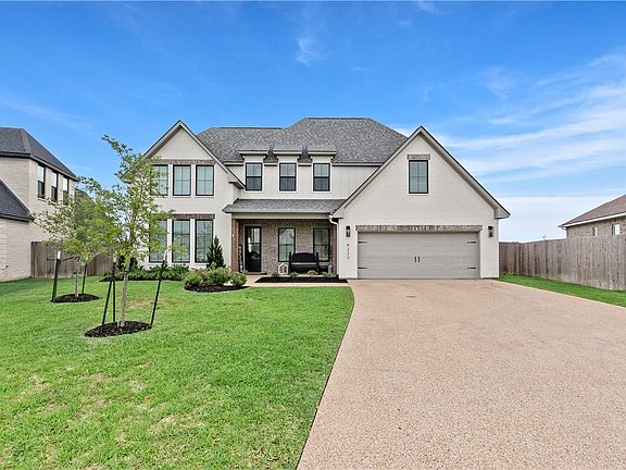 Experience elevated living in this highly anticipated 5 bed 4 bath with additional office space as well as upstairs flex space. This Magruder built home is perfectly nestled in the sought-after Waterford Heights subdivision on a .64 acre lot. This remarkable property showcases a stunning elevation, exquisite millwork, and a custom-designed kitchen featuring a double oven, GE stainless steel appliances, a walk-through pantry & a spacious island that opens to the dining area. Designed with functionality and style, this floor plan is filled with natural light through picture windows that frame the expansive backyard. Escape to the secluded primary suite, which offers a zero-threshold walk-in shower, a luxurious soaking tub & an expansive walk-in closet. Upstairs, the large bonus room awaits, providing an ideal space for leisure or entertainment. Additional amenities include a home office, dual utility rooms, upgraded blackout blinds throughout & a generous 14x21 attic space which offers ample storage possibilities. Step outside to the 14x20 covered patio, complete with a spacious granite countertop with electric & gas connections, all overlooking your oversized cul-de-sac privacy-fenced yard. This home combines comfort, beauty & modern convenience in the heart of College Station.