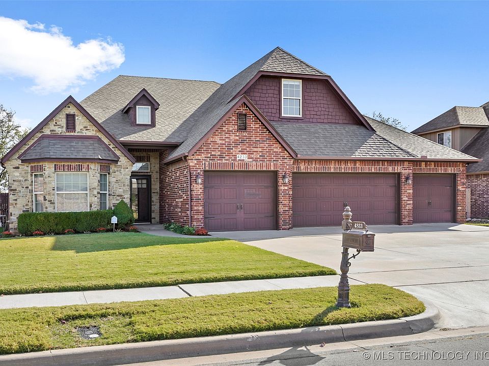 EXCEPTIONAL QUALITY HOME with 4+ Car Garage and Attention to Detail! Extensive Freshly Re-finished Wood Floors. Wonderful Large Kitchen with Island, pullout drawers, Double Convection Ovens, New 5 Burner Cooktop, New Dishwasher, Walk-in Pantry + Butler's Pantry/Coffee Bar. Very Spacious Family Room with FP & New Built-in Entertainment Cabinet that accommodates 75" TV. Luxurious Primary Suite w/Sitting Area & Fireplace shared with Bath. 2nd Bed or Office & Full Bath Down. 2 Additional Beds + Game room + Large Flex Room and Full Bath Up. Spacious Laundry Room so nice you'll be happy to be in there! Drop Zone at Garage Entry. Lots of storage. Covered Patio w/3rd Fireplace. Both HVAC units replaced 2021. New Hunter Douglas remote control Shades with Privacy or Blackout. Nice Storm Shelter. Sprinkler System. Wired for Generator. Neighborhood Park & Pool. Definitely a Must See house!