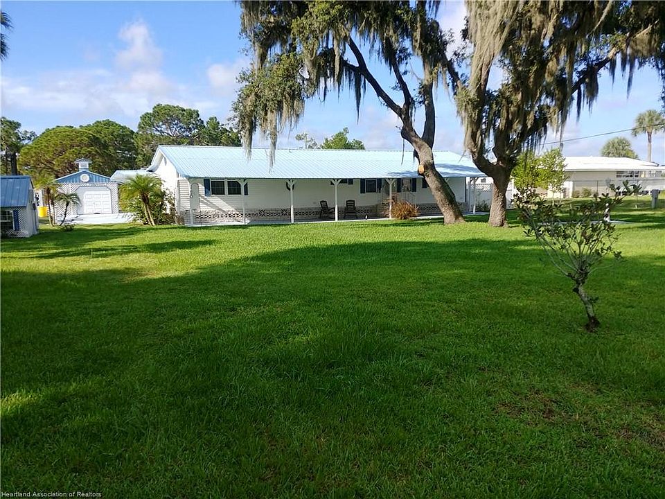 This is a Hidden Gem, a Mobile Home on owned Land with so many extras, it is just unbelieveable. The home offers 3 Bedrooms and 3 Baths, a Mother In Law(Guest Suite) with a seperate Bedroom and Bath, Cathedral Ceilings and Tile throughout. A screened porch off the back of the home and an inground pool. There are 4 seperate out building 2 with electric and Air. Are you looking for a place to park your RV or do you have friends who would like to visit in the winter? There is an RV hookup for your friends or family. All this on almost an acre of land with a totally fenced in yard. THERE IS A SOLAR SYSTEM SO NO ELECTRIC BILL!!!! This will definitely not last Call for a viewing today.