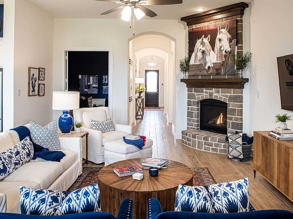 MLS# 20499751 - Built by Highland Homes - Ready Now! ~ A spacious single-story home featuring 4 bedrooms, 3 bathrooms, study, entertainment room, 11-12 foot ceilings, 8 foot doorways, & an abundance of windows for natural lighting! The 3-car tandem garage features a custom 4th bay for storage. The primary suite showcases a bay window extension for a seating area and the bathroom boasts a beautiful freestanding tub, walk-in shower, & double sinks with vanity space. Looking out to the beautiful community entrance and greenspace, this light brick home has beautiful curb appeal.