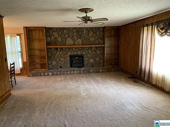 2 Bedrooms 3 Baths Basement has large room and full bath and garage. Full brick 2.92 acres. Kitchen and dining room huge den with fireplace Neat and clean move in ready. Back of property has creek on it. Level yard easy to care for. Pole building and boat storage plus storage building