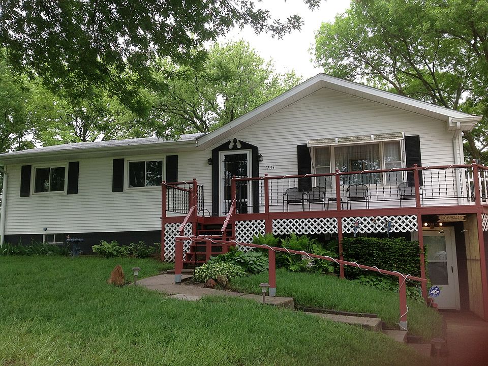 Raised Ranch with 3 bedrooms, 3 bathrooms, 2 car garage with approximately 2374 finished square feet. New water heater and dishwasher. Updated windows and lower level carpet. New furnace in 2007, new a/c in 2006, new roof in 2004. Full fenced back yard. Large attached lot included. Gated community, minutes from Omaha with no wake lake for fishing & swimming.