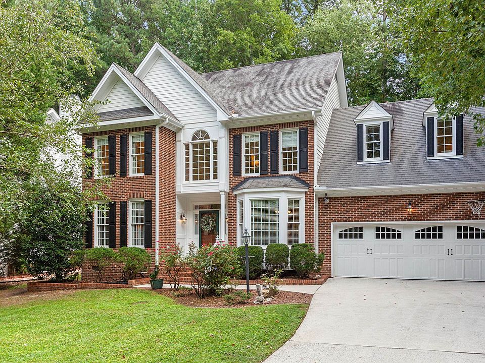 Offer received and accepted by sellers. Waiting on DD. Stunning brick front home has open floor plan and a beautiful renovated kitchen with new island, Electrolux induction cooktop, gorgeous cabinets and silestone & granite countertops. Kitchen opens to the family room lined with windows and a wonderful screen porch; both overlook the private, park-like oasis of a backyard with gardens, paths, water fountain and wooded area. Office or playroom on the main level. Beautiful refinished hardwoods down (except office/playroom). Upstairs is the spacious owner's suite with renovated bath, 2 bedrooms and large bonus room or 4th bedroom, and renovated hall bath. The walk-up attic could be finished off for even more living space. Newer HVAC (upstairs 2023) ! Underground fence! Close to Lake Lynn park, 540, RTP, shopping, restaurants, schools...great location!