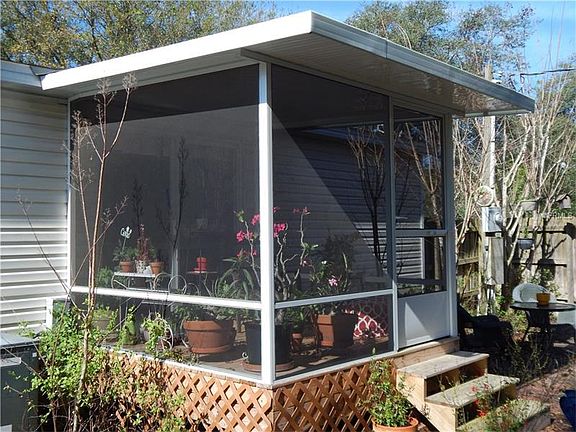 HOME SWEET HOME!!! WELCOMING FRONT DECK INVITES YOU INTO THIS COMFORTABLE 3/2 DOUBLE WIDE ON NEARLY 1/2 ACRE WITH PRIVACY FENCE ON THE SIDES AND REAR. NOTICE THE BAY WINDOW AND THE WOOD FLOOR AS YOU ENTER THE SPACIOUS LIVING ROOM, THEN ON TO THE DINETTE AND KITCHEN BOASTING A BREAKFAST BAR AND NEWER STAINLESS STEEL APPLIANCES. SPLIT FLOOR PLAN PROVIDES A LEVEL OF PRIVACY IN THE MASTER BEDROOM SUITE THAT INCLUDES A BAY WINDOW AND A WALK-IN CLOSET, THE ATTACHED BATH INCLUDES A 1920'S ERA CLAW FOOT TUB WITH A SKYLIGHT ABOVE PLUS A SEPARATE SHOWER. DON'T OVERLOOK THE NEW SCREENED FLORIDA ROOM THAT OVERLOOKS AN OPEN BRICK PAVER PATIO COMPLETE WITH BUILT IN BRICK BAR-B-QUE. TOP THIS OFF WITH A BRAND NEW ROOF!!! SMITHBUILT 20'x 10' STORAGE/WORKSHOP WILL MEET YOUR ADDITIONAL NEEDS.