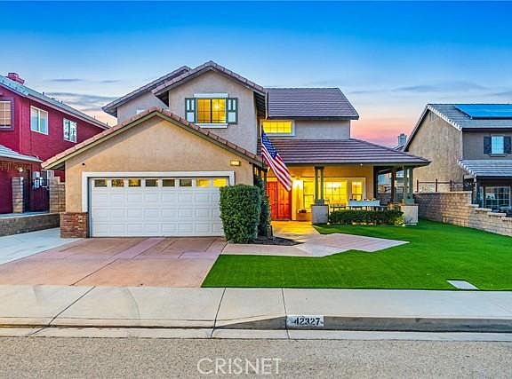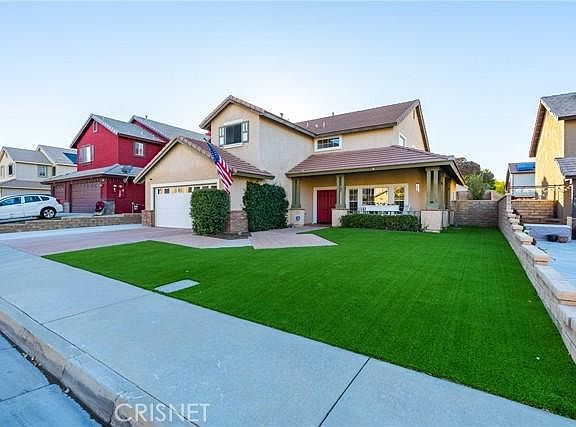 This Home Offers A Widened Concrete Driveway For Extra Parking, And A Large Covered Front Porch! Featuring Vaulted Ceiling Upon The Double Door Entry, A Downstairs Bed & Bath, New Interior Paint, and New Carpet, Open Formal Living And Formal Dining Room. The Spacious Kitchen Offers So Much Storage w/ White Cabinetries, A Center Island, A NEW LG Stovetop, A NEWER Dishwasher, Double Ovens, Perfect For Turkey AND Ham, A Walk-in Pantry, And A Breakfast Nook w/ Ceiling Fan. The Cozy Family Room Showcases A White Painted Brick Fireplace. Large Guest Bedroom Downstairs That Can Be Used As An Office. Enjoy Your Massive Master Suite That Features A Vaulted Ceiling w/ A Ceiling Fan, Double Walk-In Closets, And A Master Bath w/ Dual Vanities And A NEW Glass Shower Enclosure. Three Additional Bedrooms Upstairs, All have Ceiling Fans. Relax In Your Fully Landscaped Backyard That Showcases A Large Aluminum Covered Patio w/ Two Ceiling Fans & Lighting, Artificial Turf, Mature Trees That Includes A Large Magnolia Tree, Apple, Tree, Apricot Tree, Rainier Cherry Tree, Montmorency Cherry Tree, A Babcock Peach Tree, And A Santa Rosa Plum Tree All On An Automatic Drip Watering System! Don't Forget The Hot Tub.