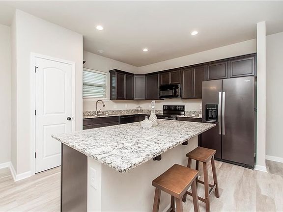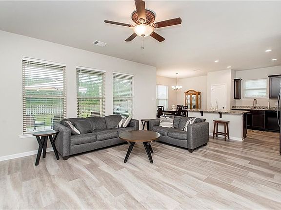 Don't miss out on this like-new 4 bed 2 full bath open and split floorplan. This well maintained home has a bright and clean color scheme with light color paint and gray vinyl plank flooring flowing through the foyer, living, kitchen, and hallways. The kitchen features 3 cm granite countertops with an island. Walk out from the dining area onto the extended patio with a fenced in yard and view of a pond. The primary suite bathroom has a double vanity, walk-in shower, soaking tub, and two walk in closets.