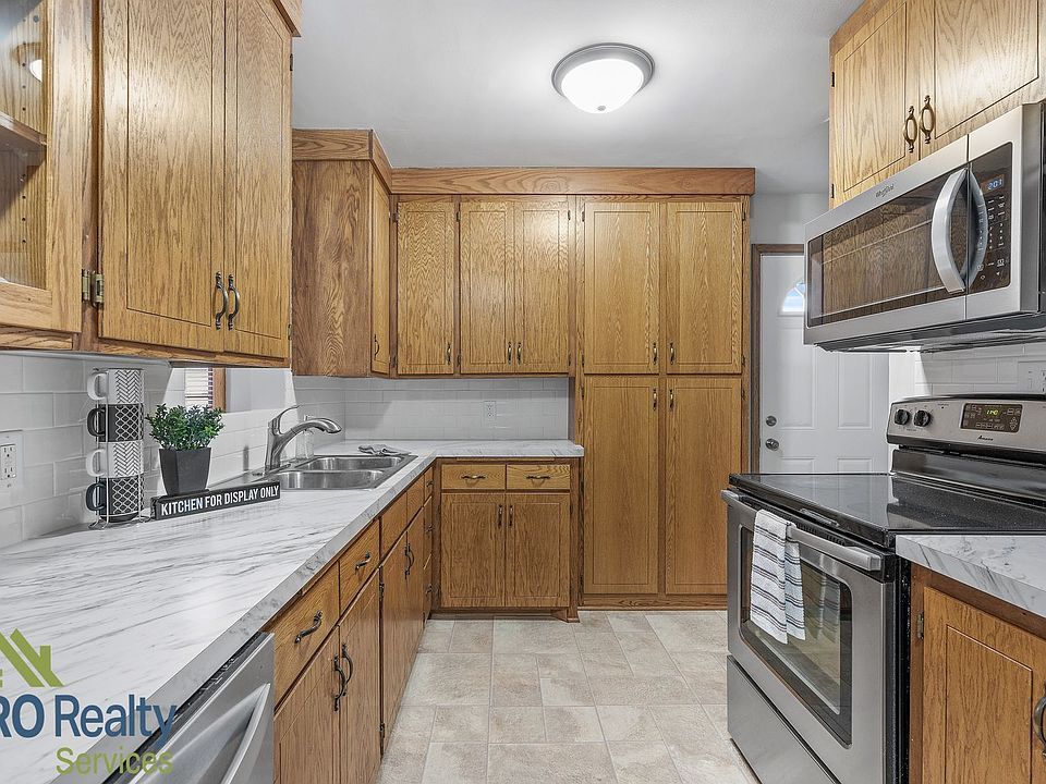 4 bedroom, 1 and 1/2 bathroom home that was remodeled in 2024 and features a great kitchen with beautiful countertops and stainless steel appliances! This home also features a bonus office/den space, an unfinished basement with laundry, lots of storage space, yard space, and an oversized 2 car detached garage! Two of the bedrooms are located on the main level, and the other two bedrooms are located on the upper level.
