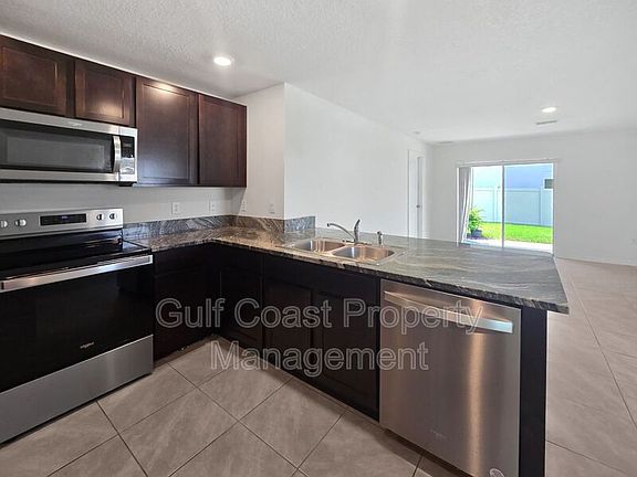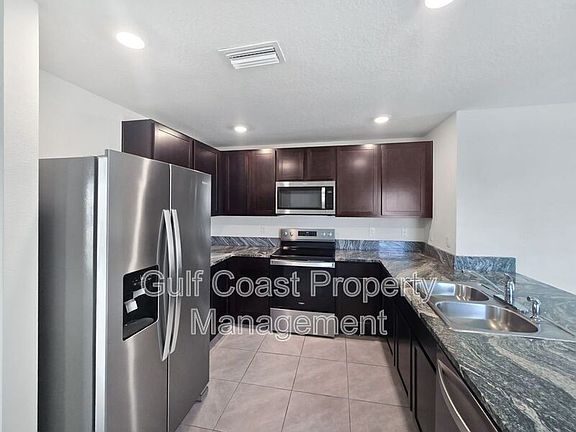 Annual rental located in the desirable community of Silverstone. This three-bedroom, two-bath residence offers a spacious, open-concept layout that blends style with everyday functionality. The kitchen serves as the heart of the home, situated between the living and dining areas, and features granite countertops, stainless steel appliances, and plenty of cabinet space. Perfect for entertaining, the kitchen flows seamlessly into the main living area. The primary suite is tucked away at the rear of the home for added privacy and includes an ensuite bath with a walk-in shower. Two additional bedrooms share a well-equipped second bathroom. Step outside to a covered lanai and fenced backyard that offers a peaceful retreat ideal for relaxing or hosting friends. Additional features include a laundry room with full-size washer and dryer, a two-car garage, and ample storage throughout. Tenants are responsible for lawn care and pest control. As a resident of Silverstone, you'll have access to community amenities such as a clubhouse, heated pool, tot lot, and a dog park. Conveniently located near I-75, I-275, and Moccasin Wallow Road, you're within easy reach of Tampa Bay, Sarasota, and Lakewood Ranch. Plus, the emerging downtown area nearby offers new shopping and dining options. Available for move-in after Gulf Coast and association approval. This home offers both convenience and comfort in one of the Gulf Coast's fastest-growing areas. Tenants handle lawn care and pest control. Resident's benefits package. Amenities: community pool