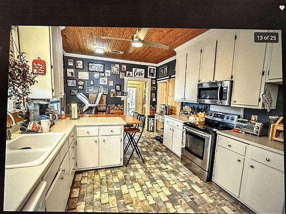2.38 of rolling hills, pecans trees and with a view of the pond. Covered screened in back porch with Hot tub. 2bed/2 bath. Walk in area to attic is Unfinished perfect to add on for family. Kitchen has plenty of cabinets/breakfast bar. Barn style doors. Great for animals. Or to just relax on either porch or enjoy the scenery. It's a must see in person. 2 Car garage 24x40 with unfinished room with plumbing. Covered RV spot with electric. DOG ON PROPERTY BITES Don't enter without appointment.