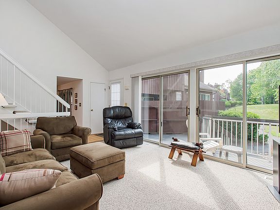 Immaculate Glen Hills contemporary End Unit with all beautifully updated baths; hardwood floor in kitchen, dining room & powder room. Freshly painted throughout. Large, full basement. Kitchen includes a new stove & refrigerator. All appliances remain. Living room has cathedral ceiling w/a wood burning fireplace. The eat in kitchen has plenty of storage in the pantry. Both the LR & EIK have sliders that lead to the deck which raps around the unit. Head upstairs, and you'll find the loft, 2 bedrooms & 2 full baths. Ceiling fans in the Master bedroom & loft. Both bedrooms boast of brand new carpeting, The basement is a large unfinshed space that can be turned into 3 rooms. The garage is attached. The unit is tucked away in the back of the development overlooking green space, and serenity.