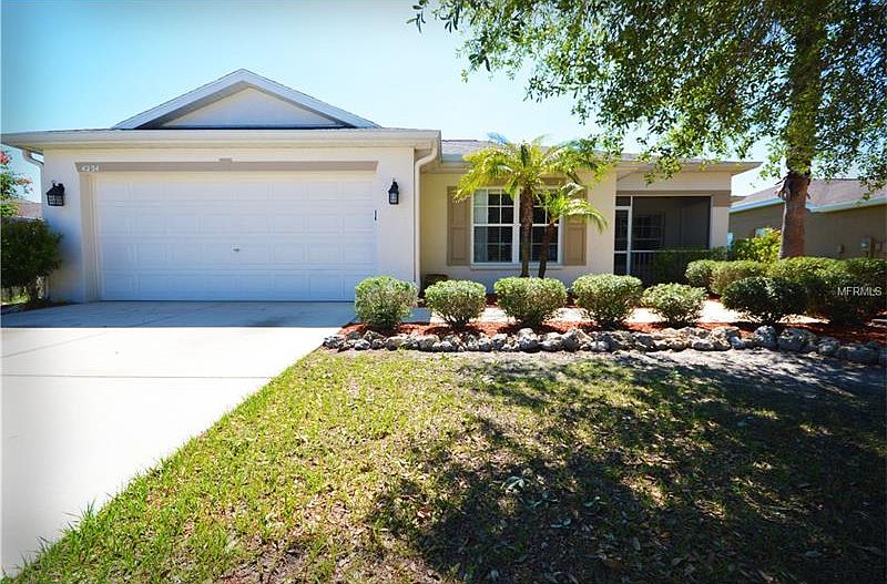 Welcome home to this fantastic 4 bedroom, 2 bathroom home located in the well-known community of Kingsfield. This home features custom upgrades throughout and a freshly painted interior! Upon entry, you will be immediately delighted with the warm, natural lighting and spacious open floor plan. This home also offers ceramic tile flooring and wood laminate throughout. Host movie night in the large family room with voluminous vaulted ceiling, custom ceiling fan, decorative wall niches, and wood laminate flooring. Prepare a meal or many in the large gourmet kitchen with closet pantry, wood cabinets, and breakfast bar & nook. Enjoy your holiday feast in the gorgeous formal dining room with stunning decorative lighting, and ceramic tile flooring. The master suite comes complete with custom lighted ceiling fan, walk-in closet, wood laminate flooring, and decadent on suite with wood cabinets, walk-in shower & garden tub. Relax and read a book in the large screened-in lanai or have a cookout in the large fenced back yard. In addition to the many wonderful qualities this home presents, it is also in a great location. Kingsfield is a quiet, family-oriented community located in Parrish; Its close to schools, dining, shopping and I75 yet perfectly tucked away from the hustle & bustle. You absolutely must see this home for yourself!