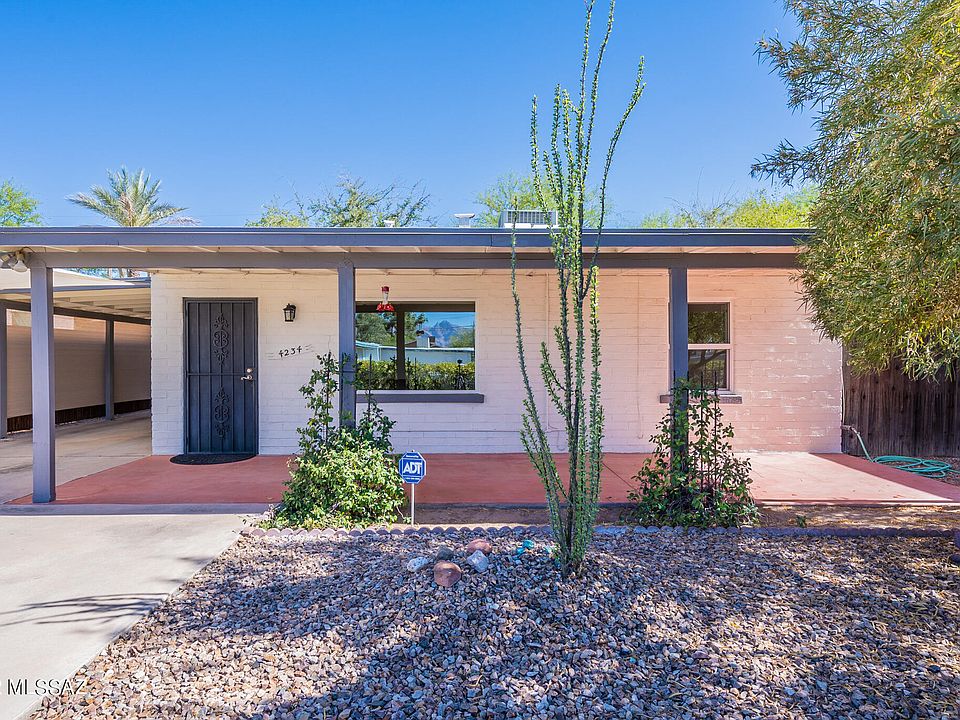 Come fall in love with this beautifully maintained mid-town bungalow! Recently painted inside, this home has the convenience of a lovely updated bathroom, new hot water heater and double-paned windows, and newer HVAC and roof. The living area and bedrooms have concrete flooring, with Saltillo tile in the kitchen and marble flooring in the bathroom. Enjoy both the front and back patios on this north-facing home, as well as the spacious yard with mature landscaping. This is a charmer! Open house from 1-4 PM on 06/10, 06/11, and 06/12.