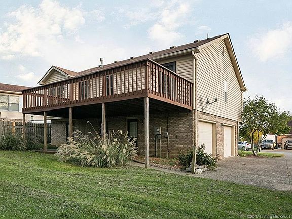 Over 1600 sq. ft with 2 car garage in family friendly Glenbrook Manor subdivision in New Albany. This well maintained home has been Freshly (professionally) painted from ceilings to floors. 4 bedroom (two on first floor and two on lower lever offers privacy)- 2 bath- Eat- in Kitchen has ceramic tile. The open-separate dining room has hardwood. Spacious Vaulted family room has hardwood and leads you to the large deck (27x12) over looking the huge fenced in back yard that offers privacy as it backs up to SIGS complex (trees in between). Roof, windows (on the front of the house) some flooring and lighting was all redone/updated in 2011. Master bedroom has a separate door leading to the deck.