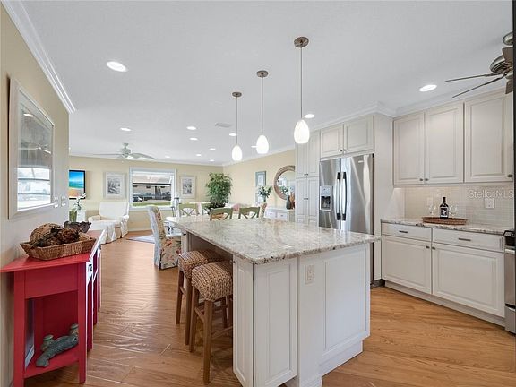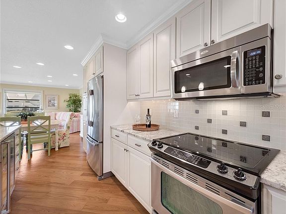 Sensational Sarasota Bay views and well-manicured grounds serve as the breathtaking backdrop for this peaceful and expansive 1st floor turnkey furnished, move-in ready, walkout residence in the esteemed Pelican Harbour & Beach Club on sought-after Longboat Key. Experience the love, care and style immersed into every space of this flowing floor plan, as exceptional touches and elegant appointments are found at every turn, from the diagonal, rich wood flooring below to the recessed lighting and crown molding above and every detail painstakingly planned in between. The coastal-inspired kitchen is reminiscent of the pages of a style magazine, complete with granite counters, stainless steel Whirlpool appliances, white cabinets, wine refrigerator and chic pendant lights illuminating the center island/breakfast bar. Entertain with ease in the spacious living room or al fresco on the screened lanai, which boasts attractive tiled floors and direct walk-out to the greenery and the shore of bay waters beyond. The master suite is an elegant and comfortable respite, with slider access to the lanai, dual vanities and master bath with gorgeous tilework. This residence is located in the prized bay side of the Pelican Harbour & Beach Club Community and offers residents a full menu of resort-style amenities, including a heated pool, 2 tennis courts, clubhouse, kayak launch, deeded beach access, boat docks with the lowest docking fees on Longboat Key and more. Large dogs are allowed, a rare opportunity for this world-class location.