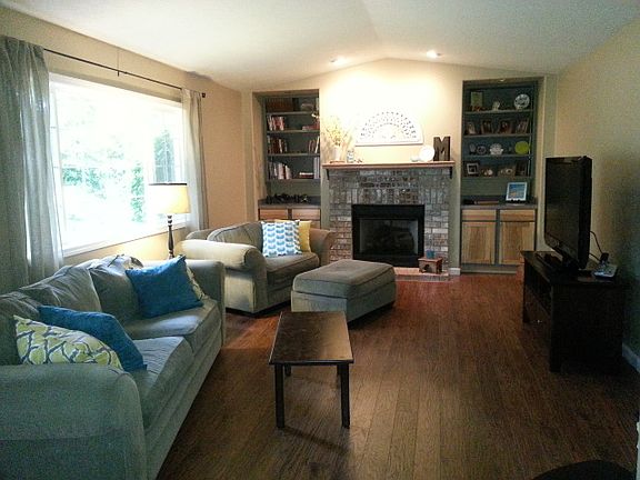 Lovely updated two story home located at end of quiet cul de sac! Vaulted ceilings in family room and master bedroom. Built-ins in family room. Kitchen features breakfast bar, pantry, new laminate hardwood flooring, slate back splash, Frigidaire gallery series appliances, gas self cleaning convection range, solid hickory cabinet doors. Backyard is fenced and professionally landscaped with 2 patio areas, raised garden box and fire pit. Other features include security system, a/c, new french doors off formal dining room leading to a pergola covered patio, new roof, siding, exterior and interior paint, 4 in baseboards, solid hickory cabinet doors, laminate hardwood flooring. Updated kitchen and bathrooms.