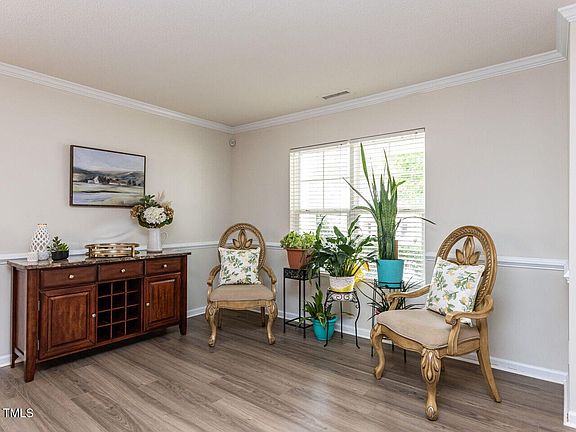 Spacious 4-Bedroom Home with Dual Living Areas & Private Backyard Welcome to this beautifully updated 4-bedroom, 2.5-bath home featuring a flexible, open layout and a private, tree-lined backyard on a flat backyard. With a 2-car garage, new luxury vinyl flooring, fresh interior paint, and a 2021 AC, this home is move-in ready! Upon entry, you're greeted by a spacious, light-filled Dining and Living Area, a versatile space perfect for entertaining or creating a formal gathering area. The heart of the home boasts an open-concept Kitchen, Breakfast Nook, and Family Room, ideal for everyday living. The Family Room features a cozy corner fireplace, and both living spaces are accented with classic crown molding for a touch of elegance. Upstairs, you'll find a huge Primary Suite along with three generously sized bedrooms, one of which could easily serve as a Bonus Room or flex space. A full hall bath and convenient upstairs laundry room complete the upper level. Step outside to enjoy a fully usable, flat backyard bordered by mature trees, ideal for relaxing, entertaining, or play. Prime Location: Situated near the Knightdale border, this home offers easy access to local parks, greenways, and a variety of shopping and dining options. Nearby grocery stores include Food Lion, ALDI, and Wegmans, ensuring all your daily needs are met. Don't miss the opportunity to own this spacious and conveniently located home. Schedule your showing today!