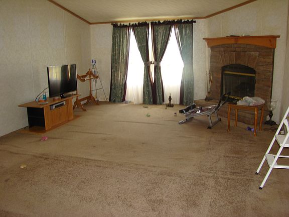 Nice 2003 Manuf. Home on 1.885 Acres, Laundry Room w/ Washer & Dryer Included, Walk In Pantry, Large Eat in Equipped Kitchen w/ Island and Bar Stools, Open Living/Family/Dining Room w/ Gas Log Fireplace, Master Suite is Spacious, MB Has Huge Walk In Closet, Double Vanity, Garden Tub, Separate Tub/Shower, Covered Front Porch, Metal Roof Installed 2016, Storage Building, Nice Country Location.