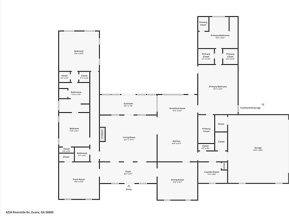 Welcome to this sprawling one-level ranch in Columbia County, offering over 3,100 sqft of living space on a serene 1.2-acre lot (includes partial pond ownership) with pond views—just 10 minutes from Evans Towne Center! Thoughtfully designed with 10' ceilings and a split bedroom floor plan, this home combines elegance, comfort, and functionality.