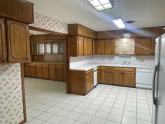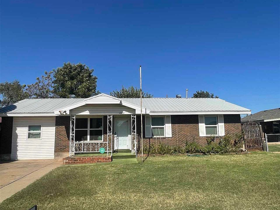 Great size for the price with a 486 square foot garage (door for one vehicle plus big work space). Access gate on back of property. This property backs to church and makes a great neighbor. The primary bedroom had a back extension and is huge with additional bathroom. Metal roof, no maintenance siding on trim. Wood burning stove in den. County assessor quotes 1274 square feet but that does not take into account the 13'x 34' addition (extended bedroom, bath and dining). In addition, there is a 11'9x10'3 sunroom not part of the square footage. Additional storage shed. Call John Naberhaus with Parks Jones Realty direct at 580-585-2315 for the most up to date information on this great east side home.