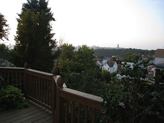 Best of city living! Fantastic cape cod on large level lot with beautiful views! Nice living room and dining room with hardwood floors and generous room sizes. Fully equipped kitchen with newer appliances. First floor master with great closet space and updated full bath on first. Two nicely sized bedrooms plus half bath on second floor. Partially finished basement with storage and playroom options. All newer mechanics. Integral garage and room for additional parking in driveway. New deck, flat yard with phenomenal city views. Lovely move-in condition!
