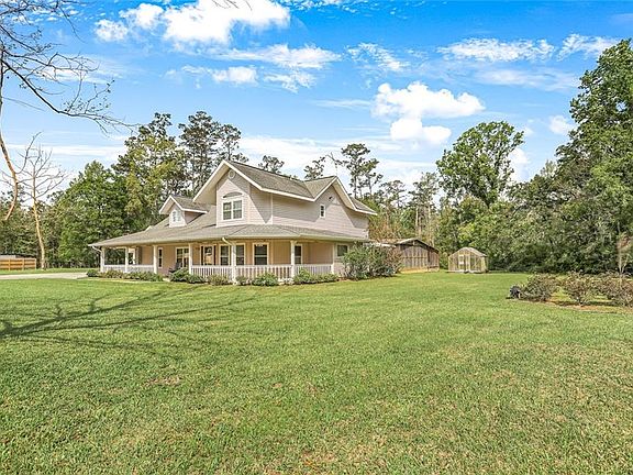 This custom home is situated on 2.66 acres! Features high ceilings, 3 bed/2.5 baths plus a huge office. Wood cabinetry, solid surface counters, beautiful hard wood flooring. Heated gunite pool with enclosure! Wood decking, covered patio, green house and screened in porch make a great place for entertaining. Workshop attached to 2 car garage.
