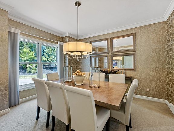 This stunning sanctuary home is tucked in the woods on a 1.37 acre lot. Impressive entry has marble floors leading to a great room with soaring cathedral ceiling and four skylights. Spacious kitchen has quartz counters, stainless appliances, tons of cabinet storage, and a breakfast nook. Home has a beautiful formal dining room. Living room adjacent to kitchen leads to a three seasons porch and one of the 3 lovely outdoor decks. Spacious main floor primary bedroom suite has a walk-in closet, tub, dual vanities and dual head tiled shower. Walkout lower level includes 2 rec room spaces, a bedroom, bath and two bonus rooms. Over $180k in seller updates were completed over the past 3 years. A new roof (50 year shingles) and 4 new skylights were installed in 2023. The whole house exterior was also professionally painted and new deck railings installed on all decks (2023). Other important updates include a new retaining wall and extensive landscaping (2022). New driveway, gutters, leaf filters, fascia, a new dishwasher & garbage disposal (2021). New garage doors & openers plus a new refrigerator (2020). So much space, so much light, so much luxury... welcome home!