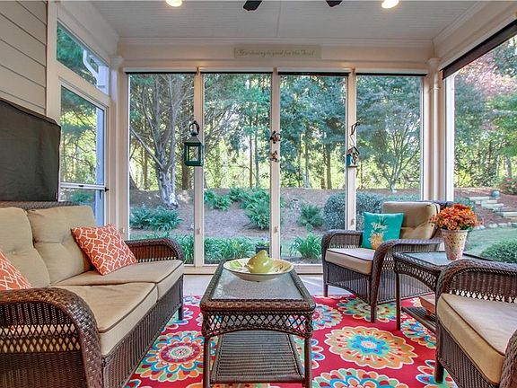 Welcome to Fieldstone Court, a sought-after enclave within the premier Fieldstone community. This beautifully maintained 2-bedroom, 2-bath home with a den/office offers true one-level living with high ceilings, hardwood floors, and thoughtful updates throughout. The spacious family room features a cozy fireplace and opens seamlessly to the kitchen with a large island, perfect for casual meals and entertaining. All appliances stay — including the refrigerator, washer, and dryer — making move-in a breeze. Enjoy peaceful mornings and relaxing evenings on the screened-in porch, located off the main living area and equipped with custom built-in shades for comfort and privacy. The owner’s suite overlooks a beautifully landscaped, private backyard and features a walk-in closet and spa-like bath with double vanities, soaking tub, and separate shower. Additional highlights include a new roof, HVAC replaced in February 2025, two-car garage with attic storage, and HOA-covered exterior landscaping for true maintenance-free living. Residents of Fieldstone enjoy resort-style amenities — 12 tennis courts, multiple pools, fitness center, clubhouse, parks, and scenic lakes — all in a convenient location close to shopping, dining, and healthcare. Meticulously cared for, move-in ready, and designed for easy, elegant living — this one checks every box!